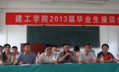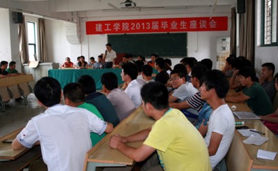 6月7日,建工学校在行知楼C401举行了2013届优秀毕业生座谈会。学校副校长饶浩洲、学校名誉院长刘辉、常务副院长熊汉锋、副院长黄世宽、杨国根、党总支副书记龚伟、团总支书记潘世超各教研室主任、各班辅导员班主任以及优秀毕业生代表、100余人参加了座谈会。会议由院党总支副书记龚伟主持。