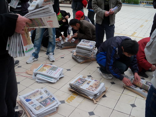 学子们不辞辛劳的举动也让大量市民受到了感动,活动开始后不到一小时,楚天都市报捐赠的4000份报纸就销售掉了一半,现场十分火爆。