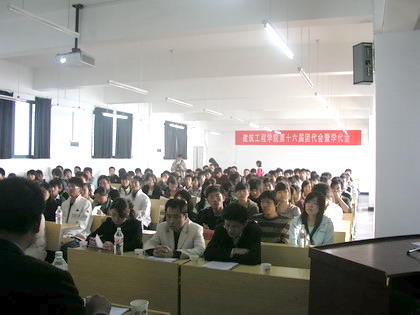 2008年11月9日上午8点,湖北黄冈工业学校第十六届团代会暨学代会在湖北黄冈工业学校C401教室隆重召开。校学工处处长马凌军、副处长刘宏文、校团委书记洪辉、副书记徐宏伟,湖北黄冈工业学校院长苏金明、副院长张学明、黄世宽、副书记陈永红、办公室主任黄磊、毛仁兵及湖北黄冈工业学校全体辅导员应邀出席了会议,参加会议的嘉宾还有来自各院系的学生会主席,以及120位学生代表和68位候选人。大会由第十五届学生会秘书长王小凡主持,毛仁兵老师向大会致开幕词,李治亮、安小夏、仲兆泽分别代表第十五届学生会、团总支、第二届宿管会向大会作了工作报告,苏金明院长、马凌军处长、洪辉书记在大会上分别代表学校和学校作了重要讲话。本次大会共征集代表提案8条,并以民主投票的方式选举了34名候选人组成了新一届团总支学生会干部队伍。最后陈永红书记对本次会议作了总结发言,代表学校对新一届学生会提出了殷切的希望,大会在下午18点胜利闭幕!
