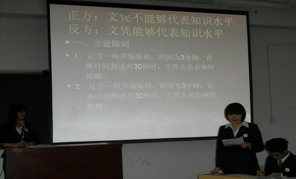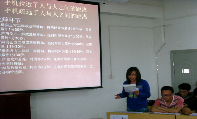 乘着奥运风,迎来辩论日。在体坛叱诧风云的光辉下,由校团委主办,湖北黄冈工业学校承办的第十届“澜湖杯”大学生辩论赛4月2日在我校C401多媒体教室顺利进行。本着“公平、公正、公开”的精神,学校共有机械系、管理系、电子系、传媒系、艺术系、贸易系、计算机系、外语系、体育系、建工学校、中职学校、医学校十二个代表队参加。