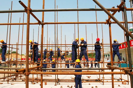 色彩鲜艳的安全帽,整齐一致的工作服,迎风招展的红旗,热火朝天的工作场面……大家不要以为这是某个建筑工地的施工现场,其实,这是湖北黄冈工业学校的学生在进行一场建筑工程技能大比拼。100多名建筑工程专业的学生参加了该校举办的首届建筑技能大赛。