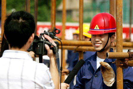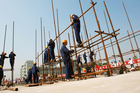 (电视同期声)湖北黄冈工业学校建筑工程专业学生 陆小伟----我们这个专业培养的全部都是管理型的人才,但是必须对脚手架的搭架(等)这些基本的作业流程进行了解。通过这次比赛,我们不仅学到了脚手架如何搭架,更提高了我们的动手能力,把技术学到了自己的手上。