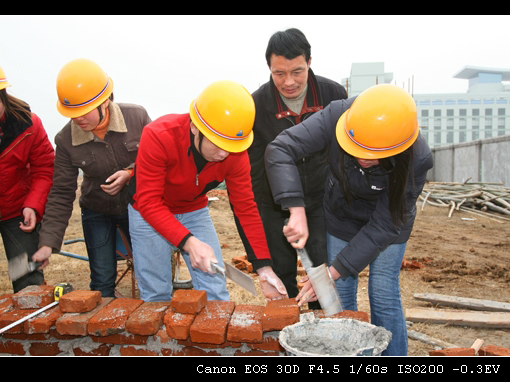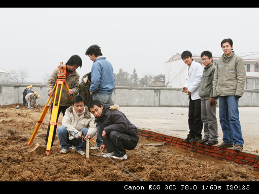 07年1月4日至5日,04级在建筑技术实训场参加景观工程技术实训,具体内容为块状材料铺装,有花岗岩石板铺装、防水地砖铺装、花池的砌筑等,经过两天的实习同学们掌握了场地平整、施工放线、地基及基础的处理、材料的性能及施工要求等知识。