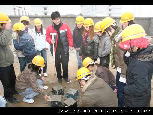 04级学生在建筑技术实训场进行块状材料铺装训练