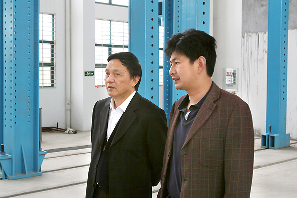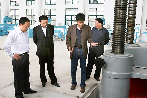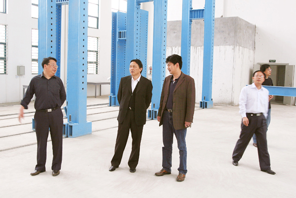 图为黄冈职业技术学校副院长李家瑞(左二)在我校结构实验室考查