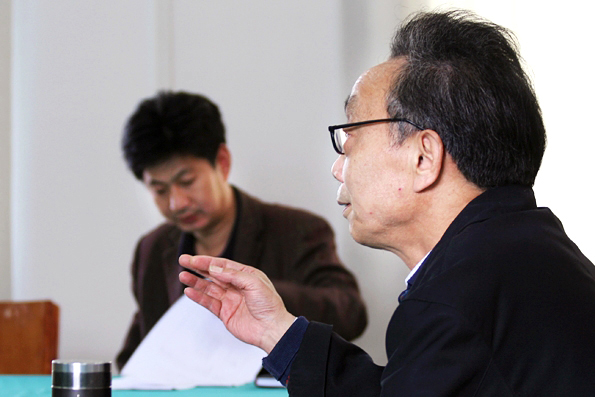 黄冈师范学校范先友教授听取苏金明院长对我校基本情况介绍,并对我校工作作出了充分的肯定