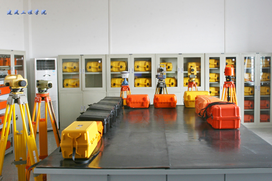测量实验室下设普通测量实验室、精密测量实验室,总面积为200平方米。主要实验仪器设备有:静态GPS接收机3台(套)、双频实时动态(RTK)GPS接收机3台(套)、各种全站仪12台、精密电子水准仪1台、精密水准仪10台、测深仪1台、全自动激光铅垂仪1台、激光扫平仪1台、电子经纬仪10台、DTJ2-2光学经纬仪20台、TDJ6E光学经纬仪46台、DSZ2水准仪20台、DSZ3水准仪46台,工程宽幅扫描仪1台、宽幅打印机1台、晒图机1台以及数字化成图软件和平差处理软件等。