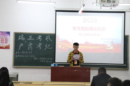 考试分为三个考场,共116人参加,以《党的十九大报告》、《中国共产党章程》为题库,以党的基本理论和基本知识为考试内容,由党支部统一命题,分为入党积极份子及预备党员两种考核试题,采取闭卷考试形式。考场上,每个人都严肃答题,严守考试纪律,考场秩序井然。