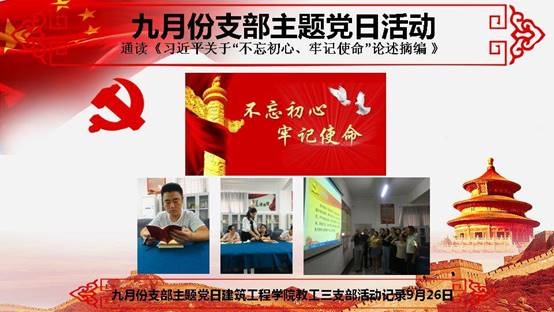 2019年9月26日下午,我校各党支部开展了主题为“不忘初心 牢记使命”的9月份支部主题党日活动。