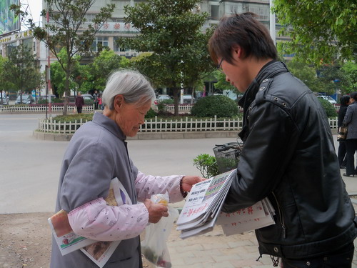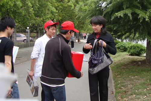 在南浦路上看到,许多市民一了解到义卖活动的目的,二话不说便掏钱购买报纸,1元、5元、10元、20元的钞票凝聚着人们的爱心,不断地投进募捐箱里;一些市民远远地看到这一幕,更是主动前来要求购买报纸;一位姓黄的女士听说义务卖报是为了捐助灾区,毫不犹豫就买下了20份报纸。就连几个还在读书的中小学生见到此情此景,也拿出钱来买报。“我觉得这样的活动很有意义,我们也很乐意为灾区的同胞尽一份心,出一点力。”市民张先生说。在南浦路和庙鹅岭车站的义卖现场,市民踊跃买报的热情让学子们难以应付,两名女学生甚至感动地流下了眼泪。