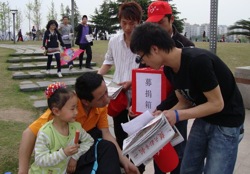 4月10日上午7点,由我校举办的“义务卖报、奉献爱心”为西南旱灾筹集善款活动拉开了序幕。210名大学生分为3组,分别到万联购物广场、银泰百货购物广场、武商量贩购物广场卖报纸并为灾区募捐。大学生们的义举感动了上万湖北民,很多人都来购买他们手中的楚天都市报。义卖活动在半天内就募得善款4912元。