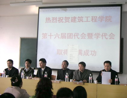 2008年11月9日上午8点,湖北黄冈工业学校第十六届团代会暨学代会在湖北黄冈工业学校C401教室隆重召开。校学工处处长马凌军、副处长刘宏文、校团委书记洪辉、副书记徐宏伟,湖北黄冈工业学校院长苏金明、副院长张学明、黄世宽、副书记陈永红、办公室主任黄磊、毛仁兵及湖北黄冈工业学校全体辅导员应邀出席了会议,参加会议的嘉宾还有来自各院系的学生会主席,以及120位学生代表和68位候选人。大会由第十五届学生会秘书长王小凡主持,毛仁兵老师向大会致开幕词,李治亮、安小夏、仲兆泽分别代表第十五届学生会、团总支、第二届宿管会向大会作了工作报告,苏金明院长、马凌军处长、洪辉书记在大会上分别代表学校和学校作了重要讲话。本次大会共征集代表提案8条,并以民主投票的方式选举了34名候选人组成了新一届团总支学生会干部队伍。最后陈永红书记对本次会议作了总结发言,代表学校对新一届学生会提出了殷切的希望,大会在下午18点胜利闭幕!