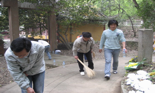 2008年4月4日建工学校学生党支部全体党员参加了以“鄂大缅怀先烈精神,建工奉献学子风采”为主题的清明节祭扫活动。早上八点建工学校领导、老师及学生党支部全体党员从建工学校出发来到西山彭楚藩烈士墓地,打扫周边卫生和清除杂草,向烈士墓敬献了花篮。在缅怀革命先烈丰功伟绩的同时进行革命传统和爱国主义教育。