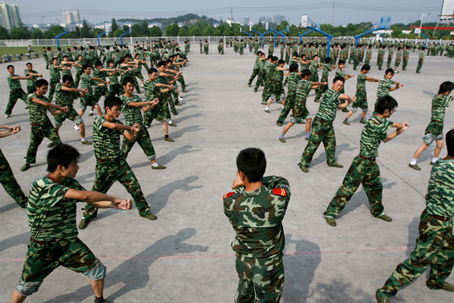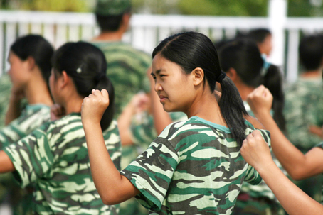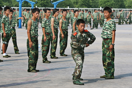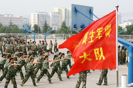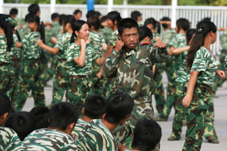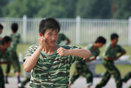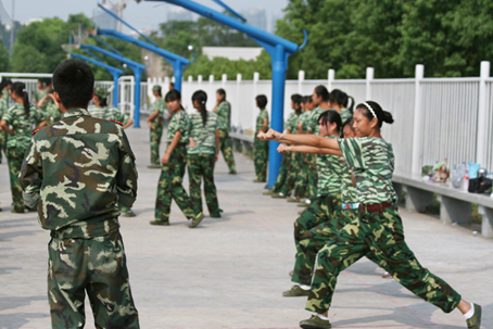 军训活动已经过去十天了,在军训教官的指导下,同学们主要进行了队列训练,以及内务整理等项科目的训练。从今天开始我校全体新生将进行擒敌拳的训练,这对参训同学,无疑又是一次严酷地考验。炎热、辛苦和疲劳是他们共同的感受,但同学都没有放弃,他们中间一些体力不支很难坚持的同学,也只是稍作休息后,便自觉归队参训。集体荣誉感、互帮互助是这次军训的两大亮点,