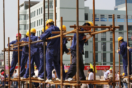 (电视同期声)湖北黄冈工业学校建筑工程专业学生 陆小伟----我们这个专业培养的全部都是管理型的人才,但是必须对脚手架的搭架(等)这些基本的作业流程进行了解。通过这次比赛,我们不仅学到了脚手架如何搭架,更提高了我们的动手能力,把技术学到了自己的手上。
