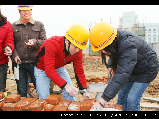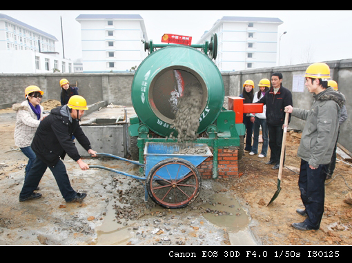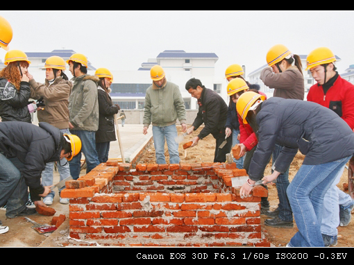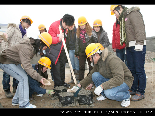 04级学生在建筑技术实训场进行块状材料铺装训练