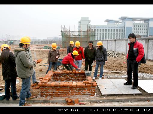 07年1月4日至5日,04级在建筑技术实训场参加景观工程技术实训,具体内容为块状材料铺装,有花岗岩石板铺装、防水地砖铺装、花池的砌筑等,经过两天的实习同学们掌握了场地平整、施工放线、地基及基础的处理、材料的性能及施工要求等知识。