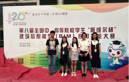 2017年5月20日至21日,第八届全国中、高等院校“斯维尔杯”建筑信息模型(BIM)应用技能大赛在浙江理工大学和吉林建筑大学举行,湖北黄冈工业学校学生张倩、叶颖、侯霞、方贵丹和梁青锐组成的参赛团队,在王晓强、张蔚和周耀三位老师的带领指导下,经过激烈角逐,脱颖而出,获得高职组团体全能三等奖、《工程管理专项》二等奖,《工程造价专项》三等奖,《绿色建筑分析专项》三等奖,《工程设计专项》二等奖,共计5个奖项。