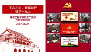 根据学校党委关于在“两学一做”学习教育和支部主题党日的总体部署,为深入学习宣传贯彻党的十九大精神,切实发挥领导干部骨干带头作用、党支部战斗堡垒作用和党员先锋模范作用,我校各党支部于11月29日下午开展了“不忘初心、砥砺前行,我学十九大”支部主题党日活动。