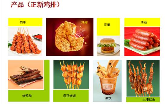 公司旗下店铺广布于大江南北的街道广场或商超车站,产品以正新鸡排、正新肉串、火爆鱿鱼、烤鸭脖和奶茶果饮为主打,涵盖烧烤煎炸、中西快餐、冷热饮品以及风味小吃等上百个品种。