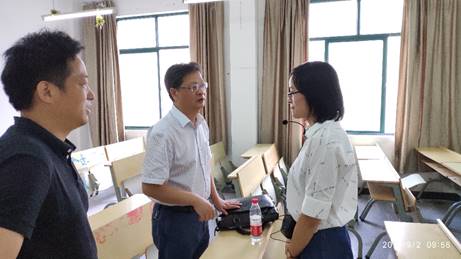 早上7:50,校党委书记万国光在学校办公室主任高兴国、学工处处长陈永红陪同下早早来到三号教学楼与我校领导班子、辅导员一起,在行知楼东门迎候上课师生,开展开学第一课检查,了解教学上课情况。上午8:05,预备铃响后,万书记一行根据课程表,对照上课时间、地点,对教师教学、学生到课、教学设备运行、教学环境卫生、课堂教学秩序等进行了巡查。随后,随机选择进入教室,先后认真聆听韩婷婷老师《控制测量技术》和任薇老师《建筑工程计量与计价》开学第一次课的讲授,认真填写《课堂教学听课评价表》,并在课后与教师开展教学研讨交流。